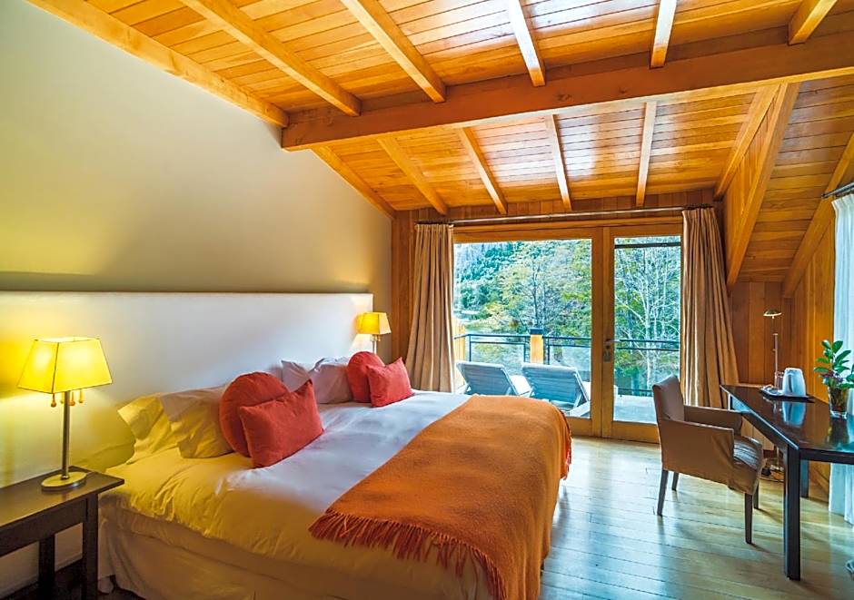This deluxe suite is made from wood and stone, and features a splendid river view.